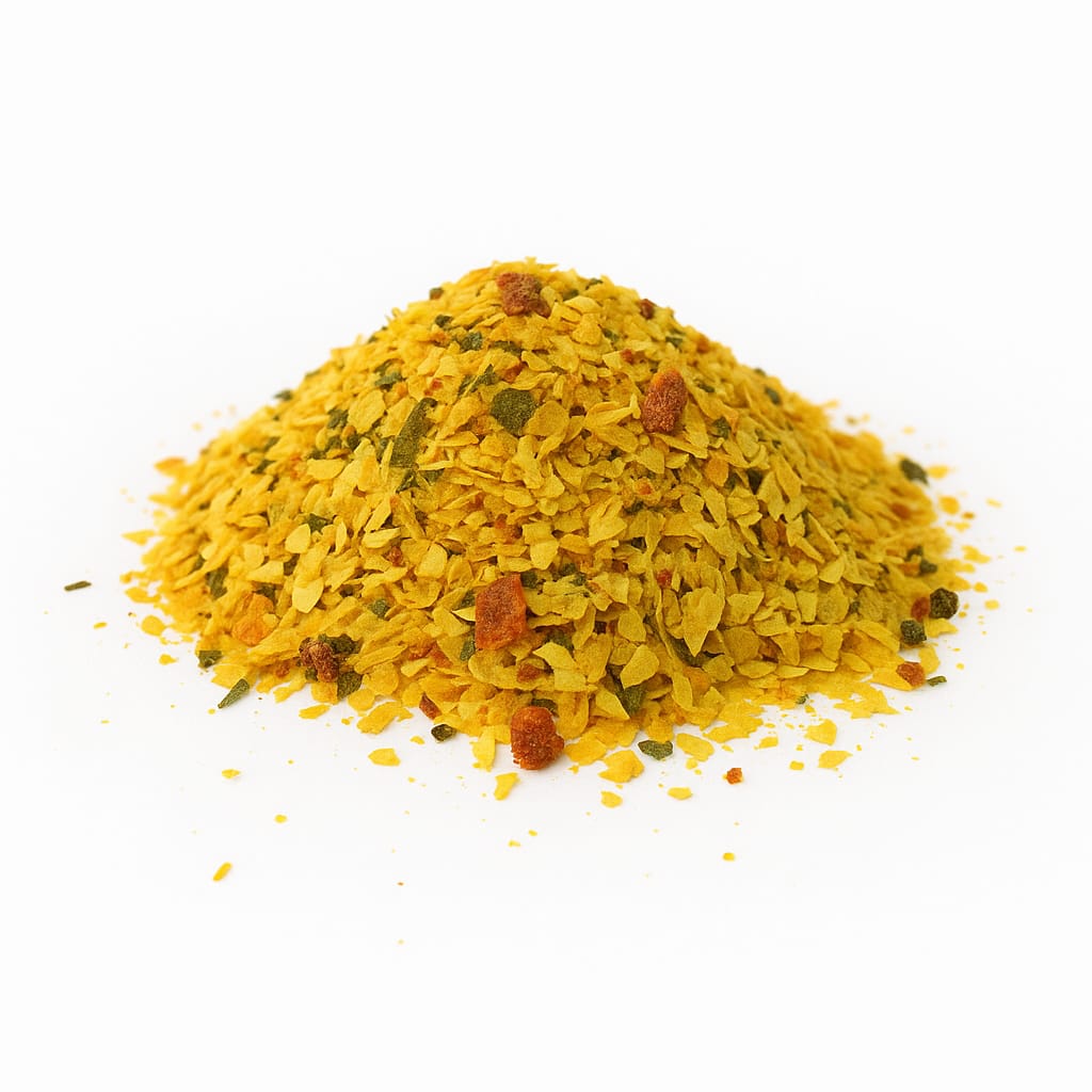 Mistura aromática com alho, cebola, tomate seco, mostarda em pó, salsa e pimentão. Ideal p/ carnes, sopas e refogados. Rico em sabor e antioxidantes, auxilia na digestão e realça pratos. Fácil uso: adicione diretamente ao preparo.
