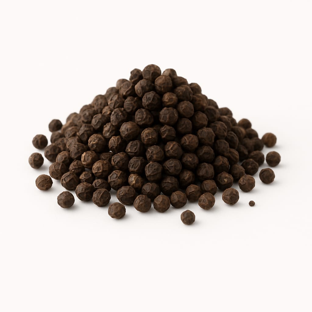 A pimenta do reino preta em grão é rica em antioxidantes e possui propriedades anti-inflamatórias. Para uso, moa os grãos na hora para preservar o sabor. Ideal para temperar carnes, sopas e saladas, realçando o paladar. Armazene em local seco e fresco para manter a qualidade.