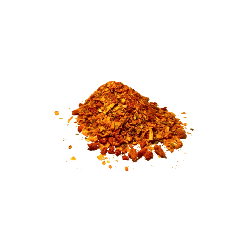 Ingredientes: Cebola granulada, alho desidratado, proteína texturizada de soja sabor bacon, farinha de milho enriquecida com ferro e ácido fólico, corante natural de urucum, óleo de soja e realçador de sabor glutamato monossódico.
